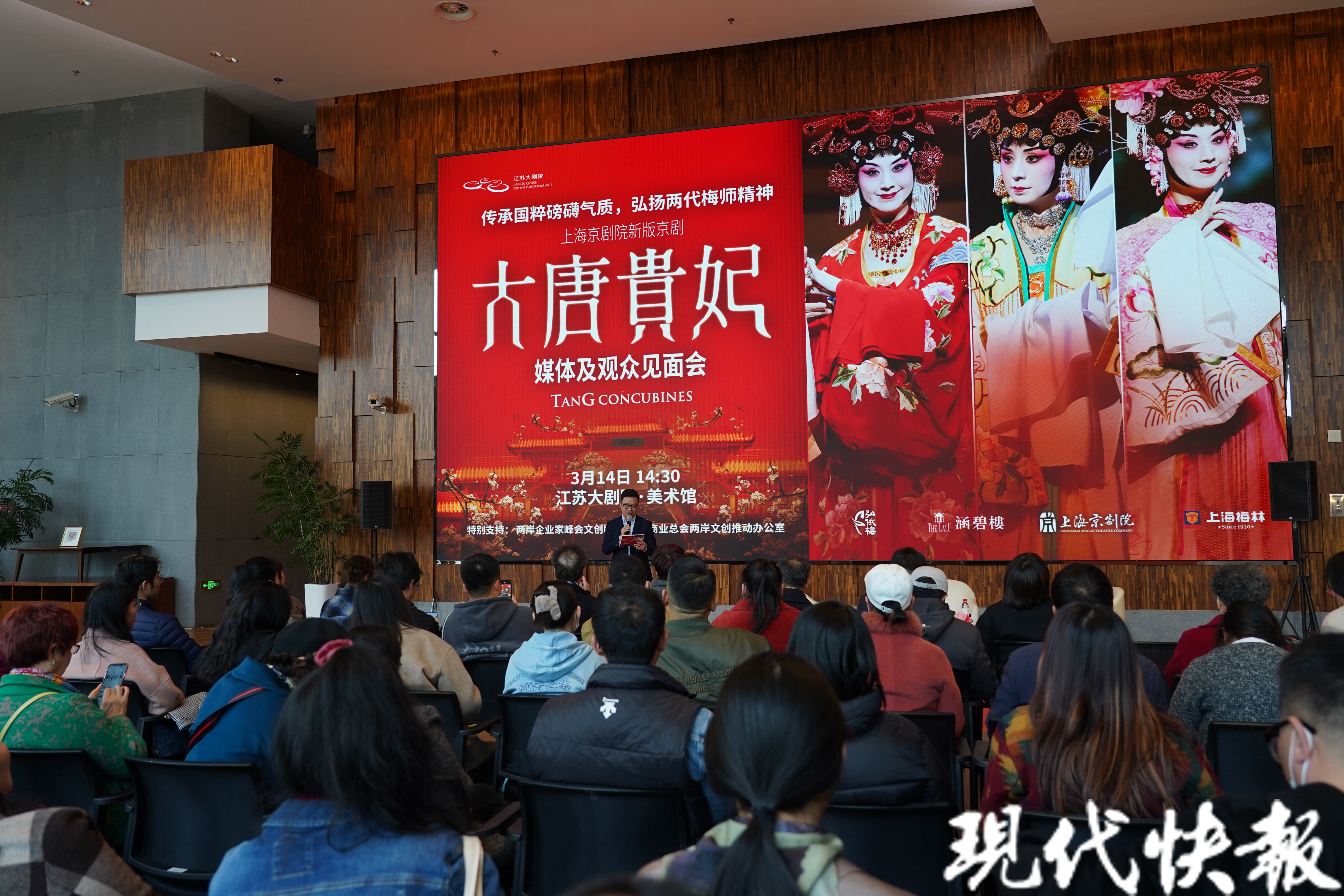 现代快报讯(记者李鸣/文郑芮/摄)3月22日—24日,上海京剧院新版《大唐贵妃》将在江苏大剧院上演,演绎千古绝恋,再现大唐风华。3月14日下午,上海京剧院副院长冯钢与新版京剧《大唐贵妃》主演史依弘、李军,在“传承国粹磅礴气质,弘扬两代梅师精神”——上海京剧院新版《大唐贵妃》媒体及观众见面会上与戏迷提前见面,分享剧目台前幕后的动人故事。