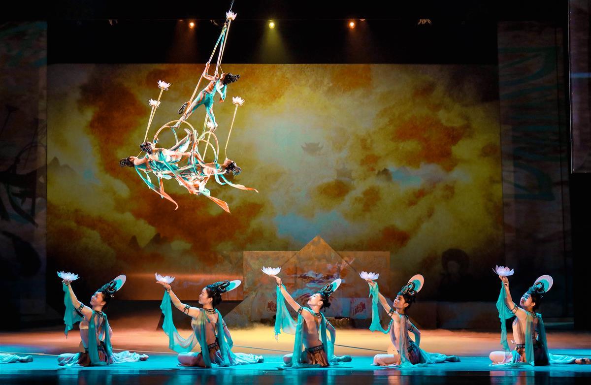 为达到更好的舞台效果,《天山雪》的舞台装置搭建也十分浩大,据悉,整个舞台将用到45根吊杆、158个舞台灯,除现代化的灯光、音效外,全剧还综合运用数字科技,通过虚幻引擎软件、动作捕捉技术、虚拟拍摄、LED 广色域屏幕等,营造出跨时空氛围。届时,“飞天”演员将在这些技术的加持下,带领观众飞跃天山雪峰、龟兹千佛洞、楼兰古城……