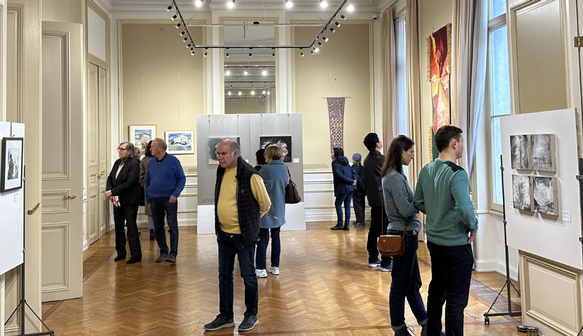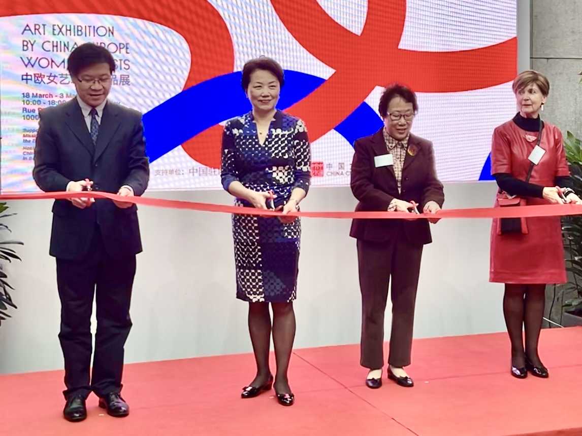 中国驻欧盟使团大使夫人黄俊、使团公使衔参赞马涛、项晓炜、参展艺术家和当地友好人士等约90余人出席活动。