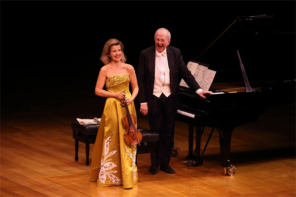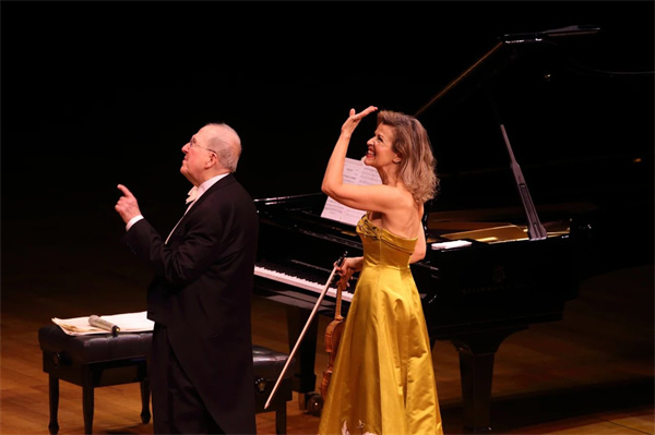 下半场,克拉拉·舒曼《为小提琴和钢琴而作的三首浪漫曲》奏响,穆特在这三首作品中释放出巨大的艺术能量,处理狂想曲式的线条、激烈的情绪时,她的张力令人惊叹,而当旋律走向舒缓时,她的诠释空灵优雅;雷斯庇基《b小调小提琴及钢琴奏鸣曲》最后亮相,在这首个人保留曲目中,穆特挥洒自如,处处流露着她自卡拉扬时代以来的积淀与突破,一曲奏罢,全场喝彩不绝。