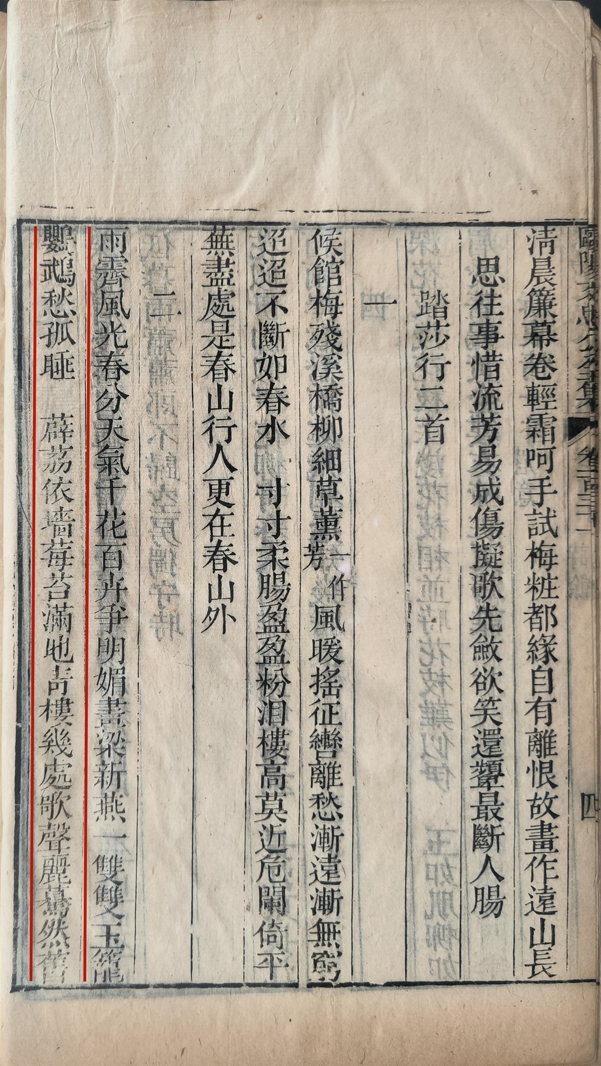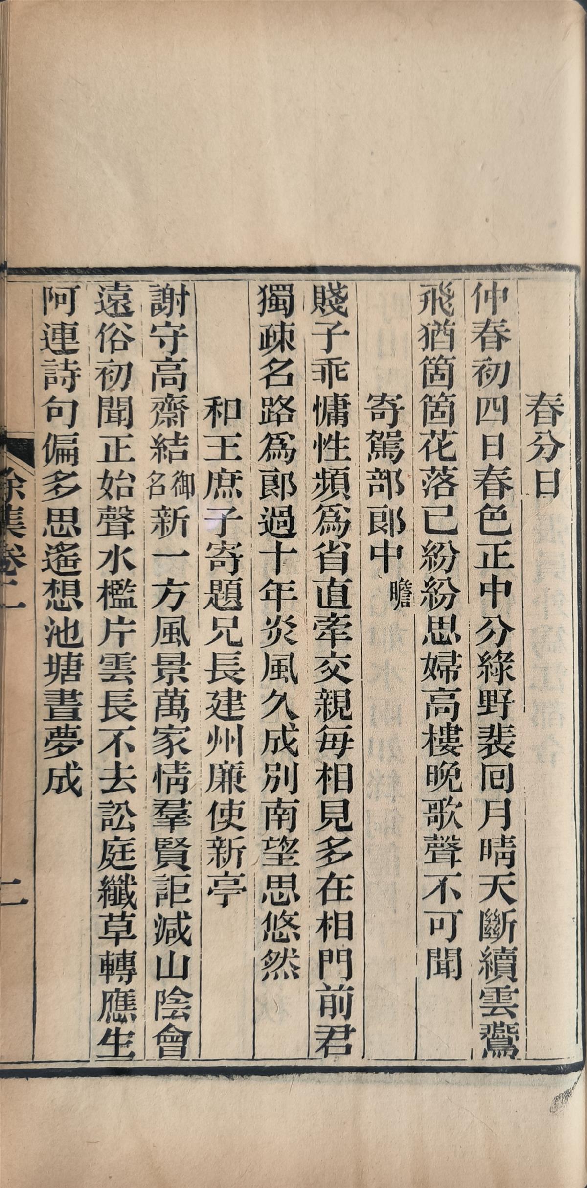 陈燕妮说,“思妇”对春日的流逝特别敏感,如李白所言,“暝色入高楼,有人楼上愁。”李白是在深秋为思妇代言,而徐铉则是在春日为思妇叹息,落花人独立,加重了离人思念的情绪。这位高楼思妇,在春分暮色中,唱响了思念远方游子的忧伤歌声,如东汉后期《古诗十九首》中所言“上有弦歌声,音响一何悲!谁能为此曲?无乃杞梁妻。清商随风发,中曲正徘徊。一弹再三叹,慷慨有余哀。”东汉末年的文人是对世道混乱、个人失意失路的长叹,而徐铉这首诗则是在享受春分之日静好之余对一位思妇的同情。史载徐铉其人“性简淡寡欲,质直无矫饰”,其诗平易浅切,真率自然,不押险韵,不用奇字,颇近白居易诗风。