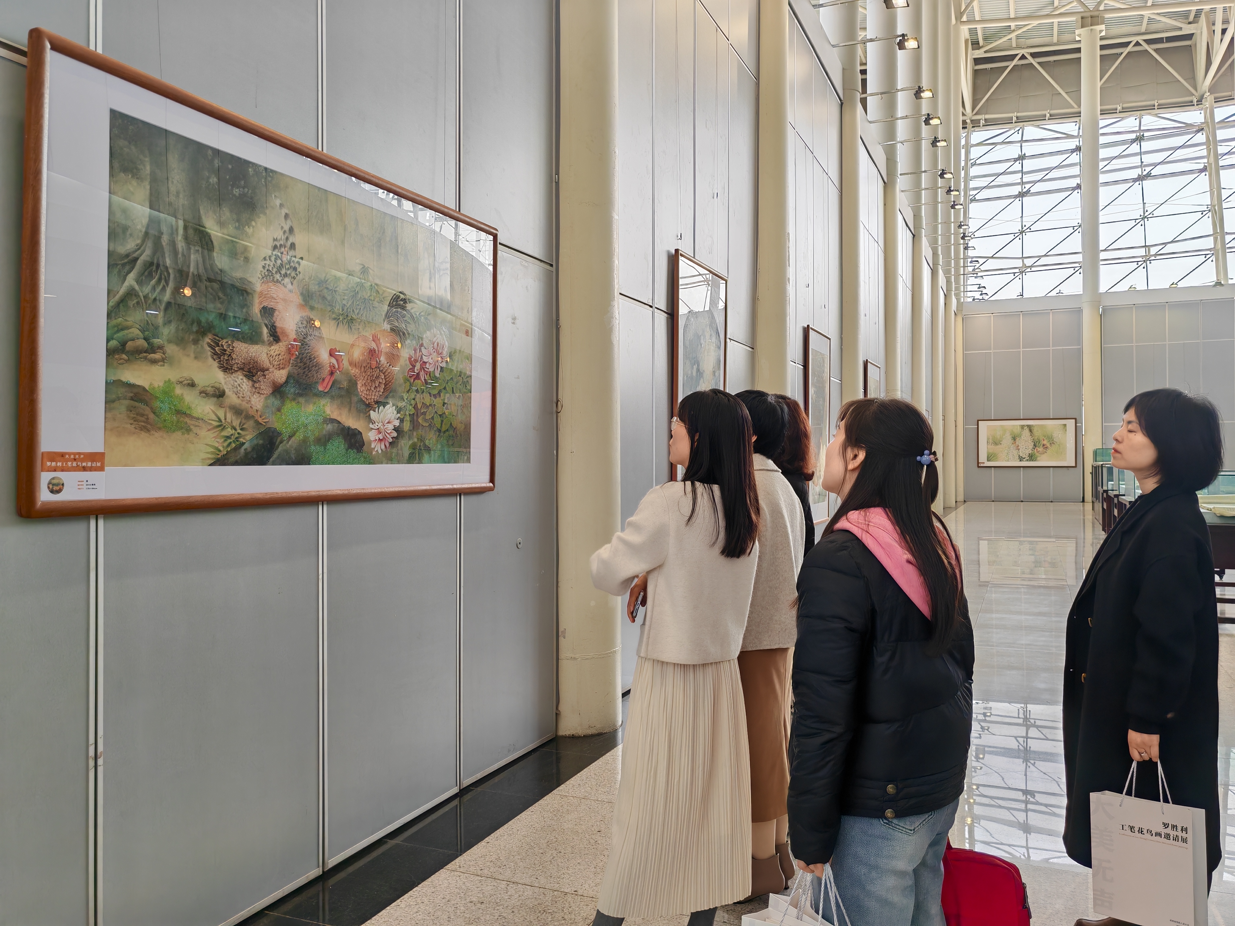 “你看这个鸡的眼睛多亮!”“对!工笔画很费时间的,这样一副画得画上一两年吧。”在罗胜利的画作《捕》前,有观众热烈地讨论。罗胜利的儿子表示,罗胜利每天在家中画画的时间长达8小时,此外还会用2小时写书法。