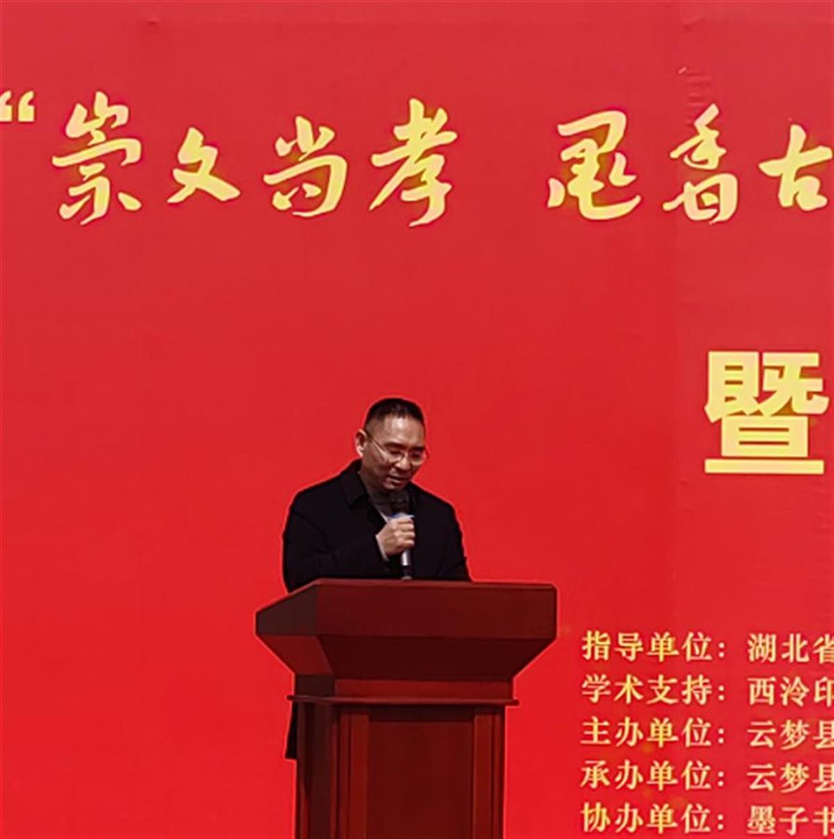 今年年逾八旬、军人出身的樊中岳先生致答谢词,一连向台下来宾敬了三个军礼。他说:“这次展览,我是把压箱底的东西都拿出来了,就是想和大家一起分享这几十年来我专注古文字和孝文化研究的一些成果,是想向云梦人民和各位艺术同道作一次汇报,更期待大家对我的作品提出宝贵意见,我还要进一步探索,我更要感恩艺术路上的各位师友亲朋!”