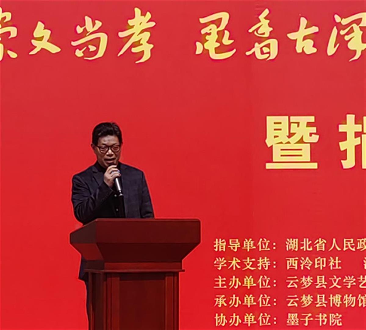 3月20日,“崇文尚孝 墨香古泽”樊中岳书法篆刻作品展暨捐赠仪式在孝感市云梦县博物馆举行。西泠印社、湖北省文史馆、湖北省书协、书法报社、湖北省书法院等单位,李刚田、孙慰祖、孟庆星等名家以及樊中岳先生身处各地甚至远在西藏的学生纷纷寄来贺信、贺作。