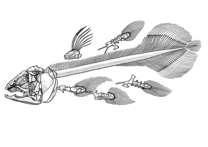 拉蒂迈鱼复原图,《寻找我们的鱼类祖先:四亿年前的演化之谜》内文插图。