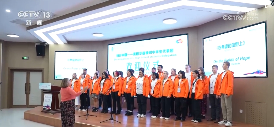 在北京活动的首站——清华大学附属中学,美国中学生们精心准备了一首中文歌作为见面礼,赢得阵阵喝彩。