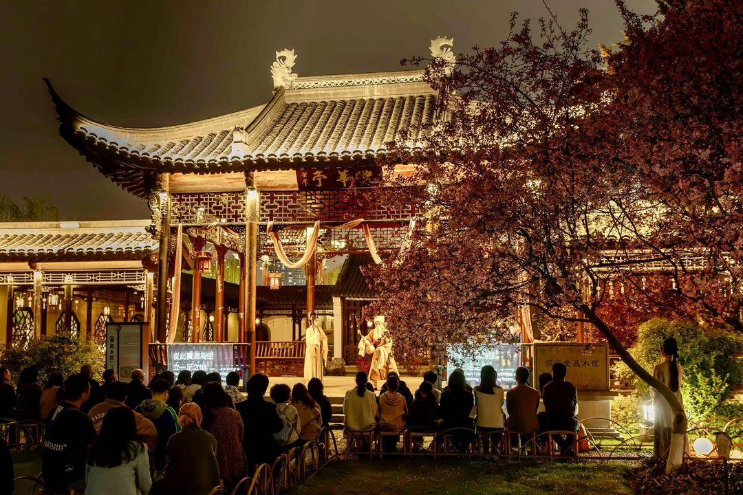 此次海棠花会期间,莫愁湖还联手非遗创新团队TEAMX,聚焦南京和莫愁湖的人文历史以《红楼梦》、《桃花扇》、《儒林外史》三本名著为创意点,融合多种表演和茶味道、茶点等多重体验,首创TEASHOW形式推出海棠茶秀,以普惠的价格,使更多游客在清明假期在海棠花雨中感受醉美的金陵一夜。
