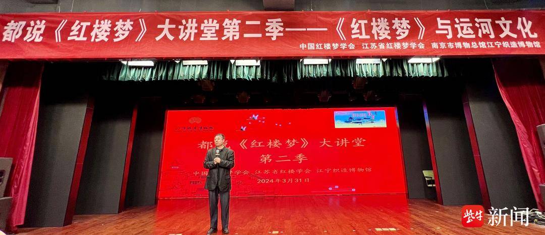 3月31日,“都说《红楼梦》大讲堂”第二季系列学术讲座在江宁织造博物馆二楼红楼剧场开讲。记者了解到,这是中国红楼梦学会、江苏省红楼梦学会和江宁织造博物馆联手打造的系列学术讲座。第二季首场讲座由中国艺术研究院《红楼梦学刊》编审,中国红楼梦学会副会长,国家社科基金资助课题“《红楼梦》与大运河国家文化公园建设研究”首席专家,大运河文化带建设研究院特约研究员张云主讲,题为《运河上的》。