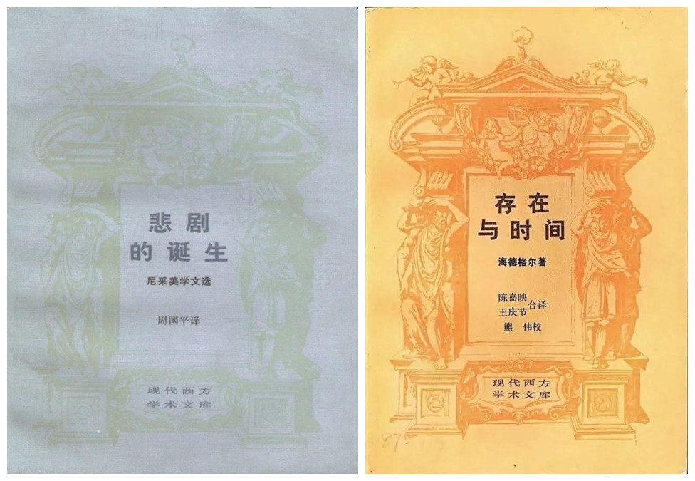左:尼采《悲剧的诞生》中译本书影;右:海德格尔《存在与时间》中译本书影