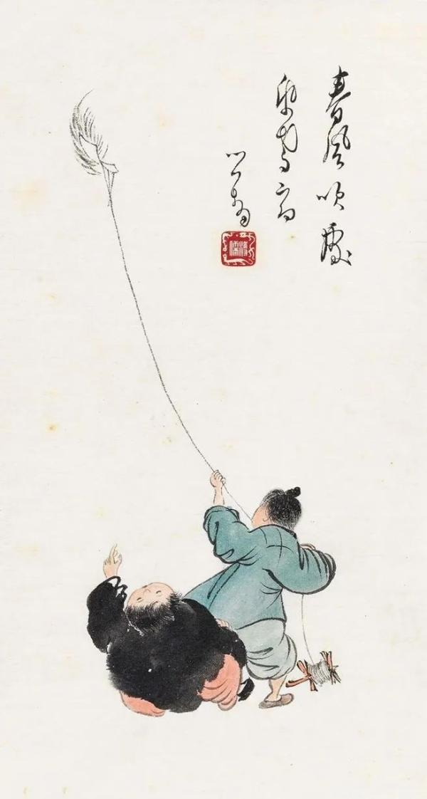 近现代书画名家溥心畬也十分喜爱风筝题材画作。溥心畬(1896—1963),清宣宗道光皇帝曾孙,恭亲王奕䜣第二子载滢次子,末帝溥仪堂兄,姓爱新觉罗,名溥儒,初字仲衡,改字心畬,别号西山逸士、羲皇上人、旧王孙等,斋名寒玉堂,1949年迁居中国台湾,曾在台湾师范大学、香港新亚书院等学校讲学。
