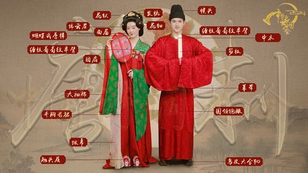 《中国诗词大会》节目播出后,手执婚书、团扇掩面、共系同心结、执杆掀盖,不同朝代的“新人”跨越时空,从文字之中走出来,惊艳大众。不少网友留言,惊叹中国传统服饰文化的精美绝伦。