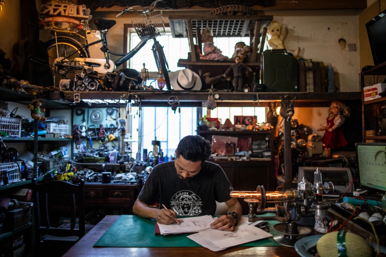 从一名被迫辍学的拾荒少年,到成为一名优秀的机车维修技师,从未接受过任何专业艺术训练的吴阳德,却创作出了一件件有缺的机械艺术作品。