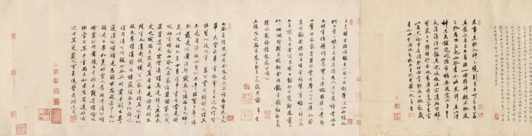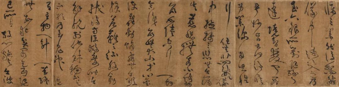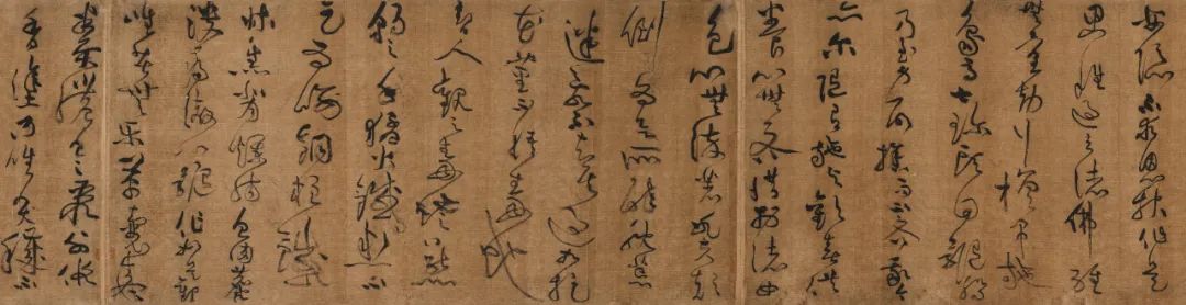 黄庭坚(款) 草书《释典卷》手卷释文:贪嗔邪见意业。妄言绮语两舌恶口口业。杀盗淫身业。夫欲志求大道者。必先净修三业。然后于四威仪中。渐次入道。乃至六根所对。随缘了达。境智双寂。冥乎妙旨。云何净修身业。深自思惟。行住坐卧。四威仪中。检摄三愆。无令漏失。慈悲抚育。不伤物命。水陆空行。一切含识。命无大小。等心爱护。蠢动蜎飞。无令毁损。危难之流。殷勤拔济。方便救度。皆令解脱。于他财物。不与不取。乃至鬼神。随有主物。一针一草。终无故犯。贫穷乞丐。随己所有。敬心施与。令彼安隐。不求恩报。作是思惟。过去诸佛。经无量劫行檀。布施象马七珍。头目髓脑。乃至身命。舍而无吝。我今亦尔。随有施与。欢喜供养。心无吝惜。于诸女色。心无染著。凡夫颠倒。为欲所醉。耽荒迷乱。不知其过。如捉花茎。不悟毒蛇。智人观之。毒蛇之口。熊豹之手。猛火热铁。不以为喻。铜柱铁床。焦背烂肠。血肉糜溃。痛彻心髓。作如是观。唯苦无乐。革囊盛粪。脓血之聚。外假香涂。内唯臭秽。不净流溢。虫蛆住处。鲍肆厕孔。亦所不及。智者观之。但见发毛爪齿。薄皮厚皮。肉血汗泪。涕唾脓脂。筋脉脑膜。黄痰白痰。肝胆骨髓肺脾肾胃。心膏膀胱。大肠小肠。生藏熟藏。屎尿臭处。如是等物。一一非人。识风鼓击。妄生言语。诈为亲友。其实怨妒。败德障道。为过至重。应当远离。如避怨贼。是故智者观之。如毒蛇想。宁近毒蛇。不亲女色。何以故。毒蛇杀人。一死一生。女色系缚。百千万劫。种种楚毒。苦痛无穷。谛察深思。难可附近。是以智者。切检三衍。改往修来。背恶从善。不杀不盗。放生布施。不行淫秽。常修梵行。日夜精勤。行道礼拜。归凭三宝。志求解脱。于身命财。修三坚法。知身虚幻。无有自性。色即是空。谁是我者。一切诸法。但有假名。无一定实。是我身者。四大五阴。一一非我。和合亦无。内外推求。如水聚沫。浮泡阳焰。芭蕉幻化。镜像水月。毕竟无人。无明不了。妄执为我。于非实中。横生贪著。杀生偷盗。淫秽荒迷。竟夜终朝。矻矻造业。虽非真实。善恶报应。如影随形。作是观时。不以恶求。而养身命。应自观身。如毒蛇想。为治病故。受于四事。身著衣服。如裹痈疮。口餐滋味。如病服药。节身俭口。不生奢泰。闻说少欲。深乐修行。故经云。少欲头陀。善知止足。是人能入贤圣之道。何以故。恶道众生。经无量劫。阙衣乏食。叫唤号毒。饥寒切楚。皮骨相连。我今暂阙。未足为苦。是故智者。贵法贱身。勤求至道。不顾形命。是名净修身业。款识:元祐九年(1094)四月戊申,书赠高城蒋叔震,山谷道人。