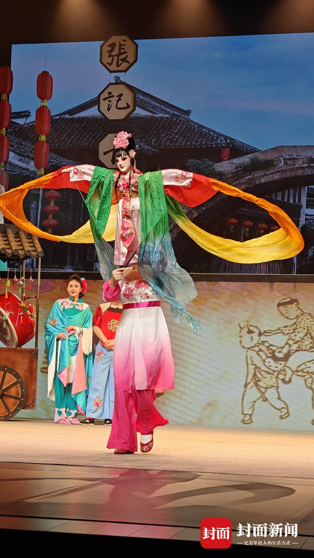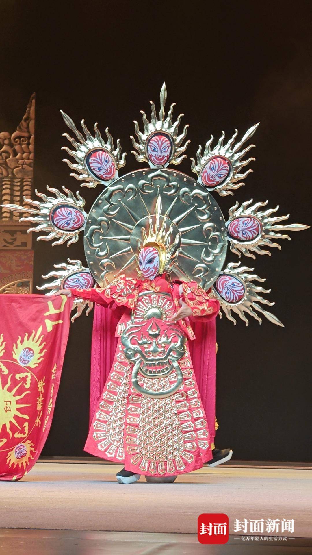 舞台上,滚灯、变脸、变服装、吐火、藏刀、把子功等川剧绝活和特技表演也得到了充分展示,“比如变脸,我们从原先的6头变脸升级为8头变脸,变服装环节也根据剧情进行了重新定制,使表演更加精彩。”