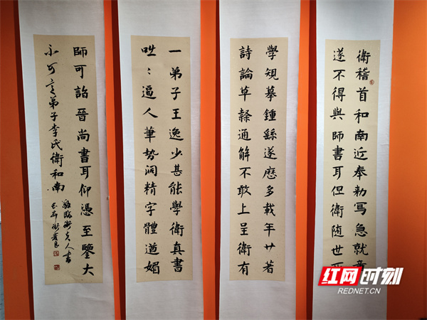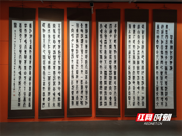 红网时刻新闻4月27日讯(记者 蔡娟)4月27日,卫双良五体书法全国巡回展长沙站在天一美术馆开幕。展览共展出书法家卫双良的篆、隶、行、楷、草五体书法作品80余幅。