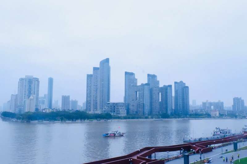 此外,设计团队将原来距离江边约40米的马路改为从建筑底部穿过,最终保留了宽60米、高10米的完整界面,建成了一个架空的公共广场。记者在现场看到,“时光拱廊”可供参观者在3个场馆间自由行走,将白鹅潭的美景尽收眼底。