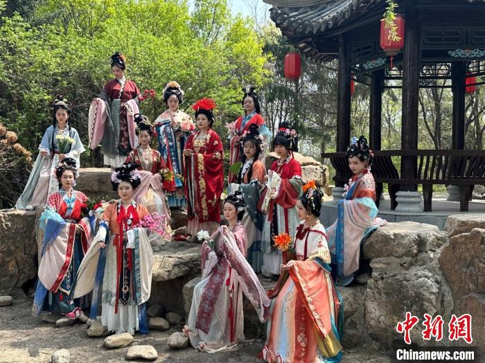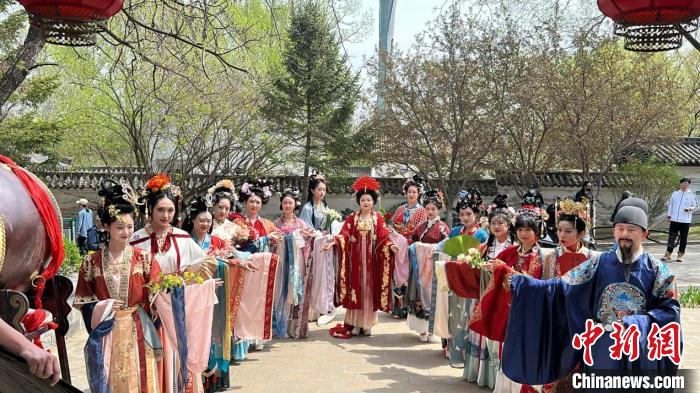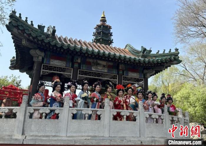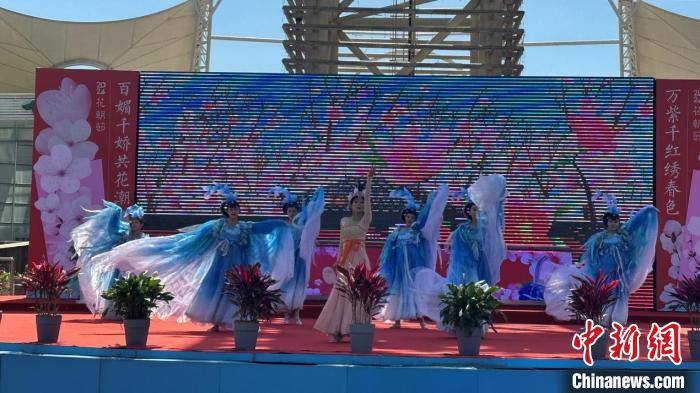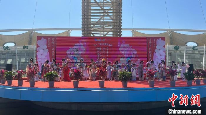 中新网沈阳5月1日电(记者赵桂华)清风碧水,绿树红桃,勾勒出一幅春日美景。5月1日,以“百媚千娇共花朝”为主题的2024沈阳植物园第二届花朝节正式拉开帷幕,霓裳映春景,花朝尽倾城。