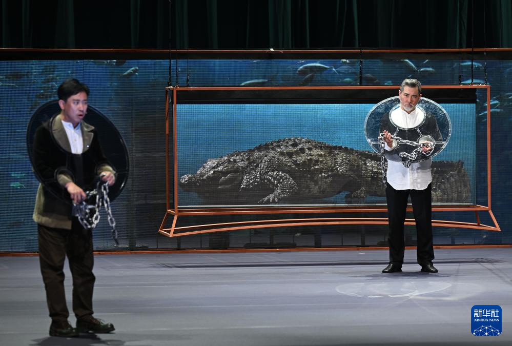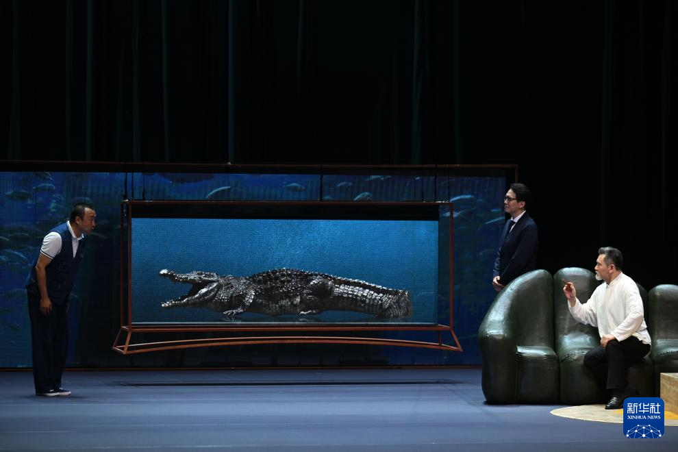 5月3日,演员赵文瑄(右一)在话剧《鳄鱼》中饰演男主角单无惮。