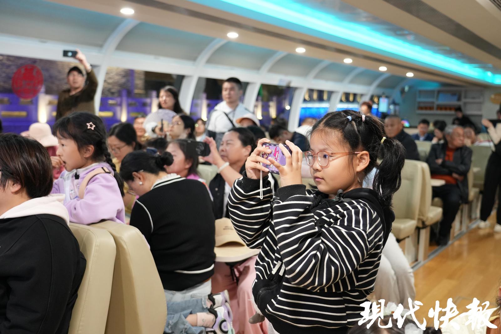现代快报讯(记者韩秋顾潇/文顾潇/摄)扬州清曲、扬州评话、杖头木偶……这个“五一”假期,扬州古运河水上游览线的游船热闹非凡、座无虚席,刚刚上线的“古运河上的小剧场”,让游船成为热门网红打卡地。