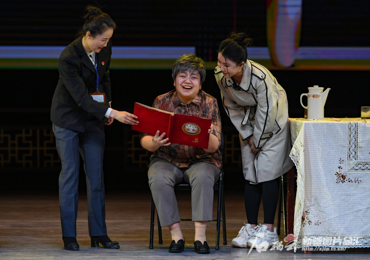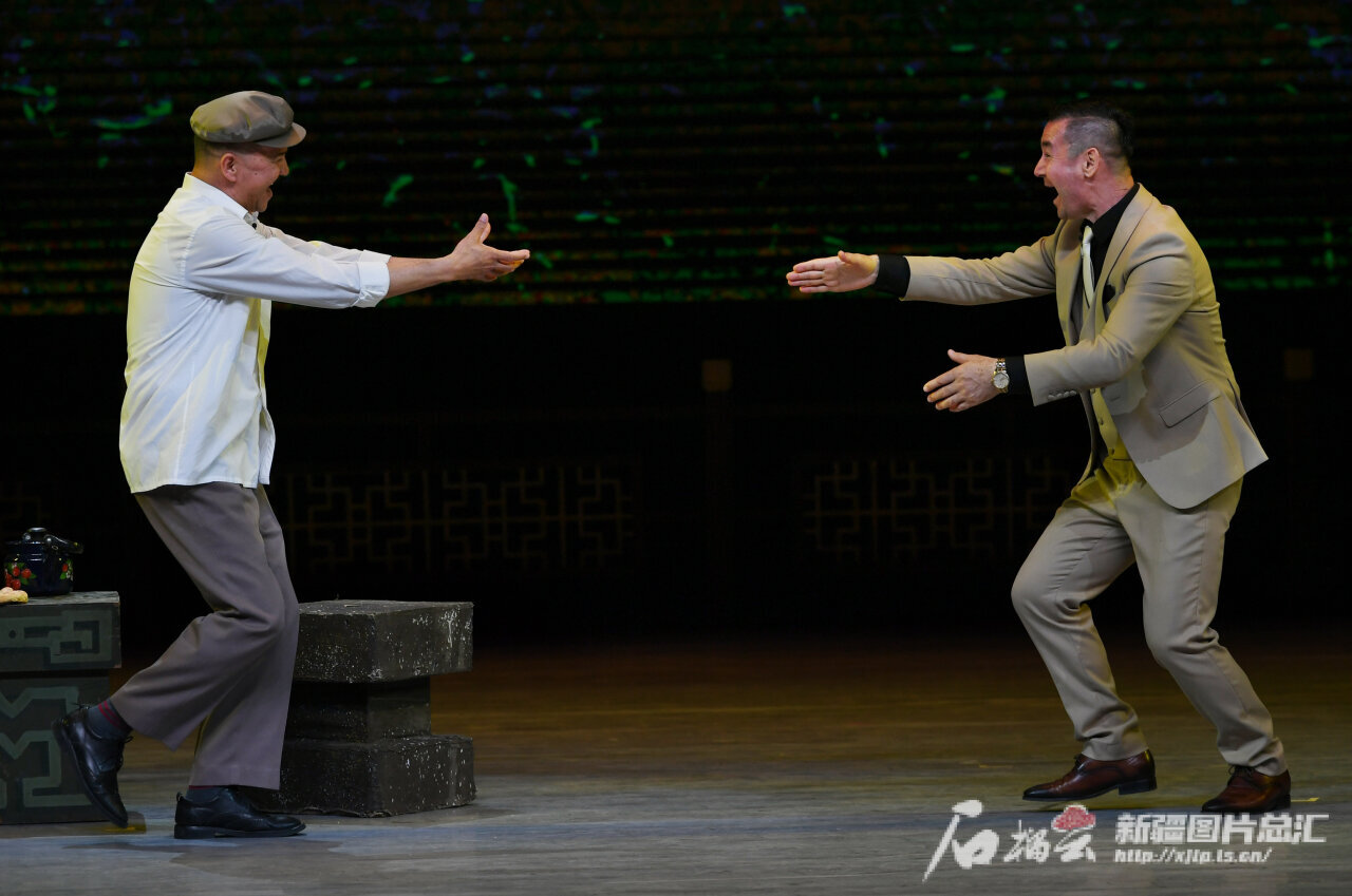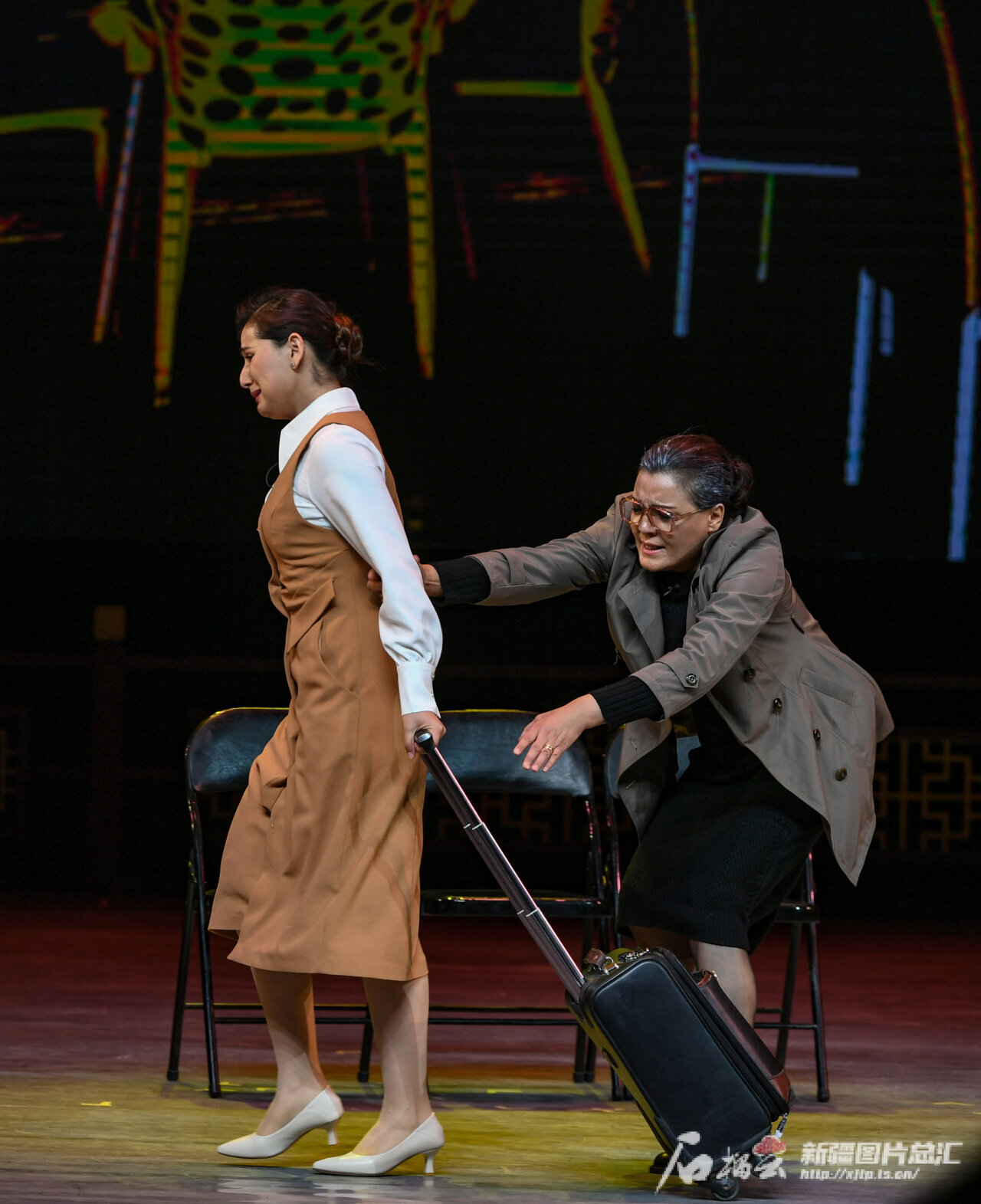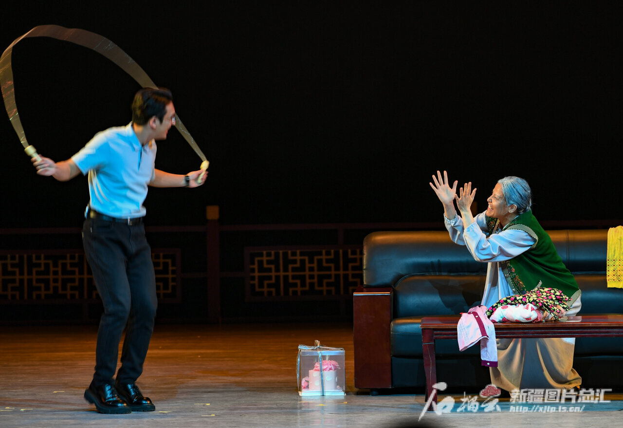 新疆艺术剧院话剧团的演员在表演小品《时间都去哪儿了》。
