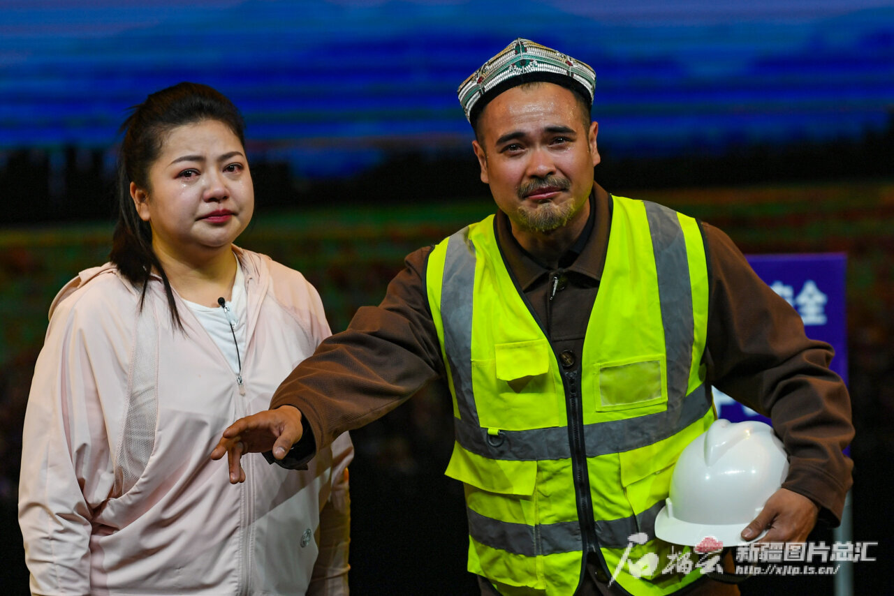 新疆艺术剧院话剧团的演员在表演小品《责任》。