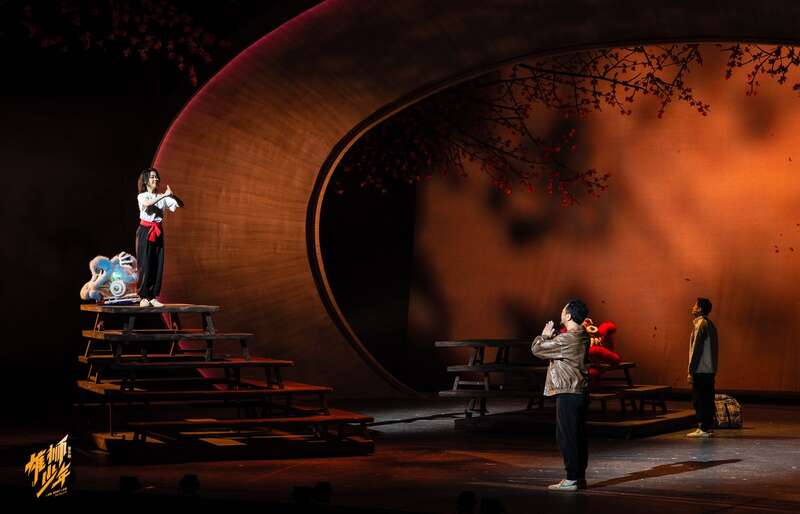 此外,舞台设计融入了创意元素“狮眼眼眶”,当剧情推进到少年阿娟直面梦想、重拾初心的关键时刻,舞台背后精心设计的狮眼眼眶发挥出其独特的作用,在《雄狮少年》一曲中随着音乐的节奏逐渐加快推进至高潮,舞台上方缓缓掉下一个圆框,精准地落在狮眼眼眶的中间,意味着狮眼完成点睛,同时也唤醒了少年无限壮志。