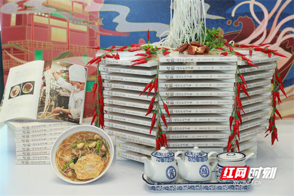 长沙市新华书店展出《一碗湘粉韵味长》书花造型。这个书花远看是碗,装载着湖南丰富的地域美食文化,近看像口井,代表着米粉文化的源远流长。