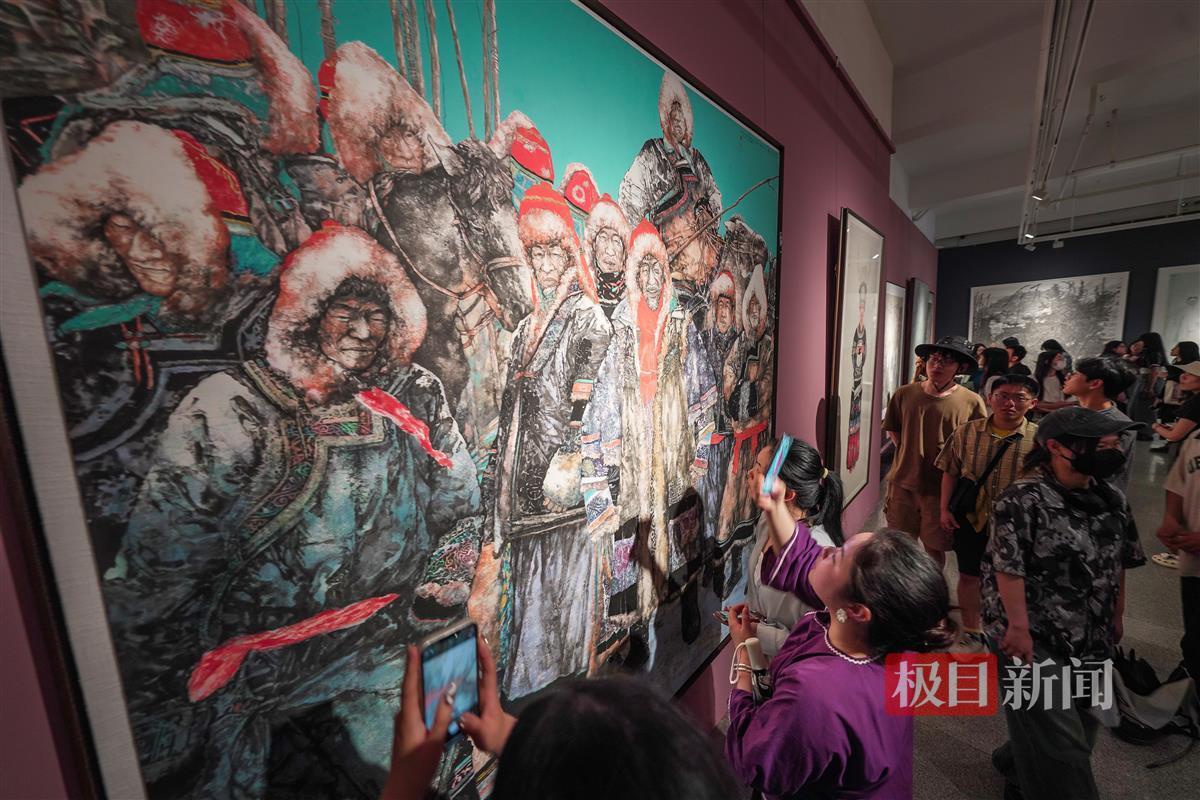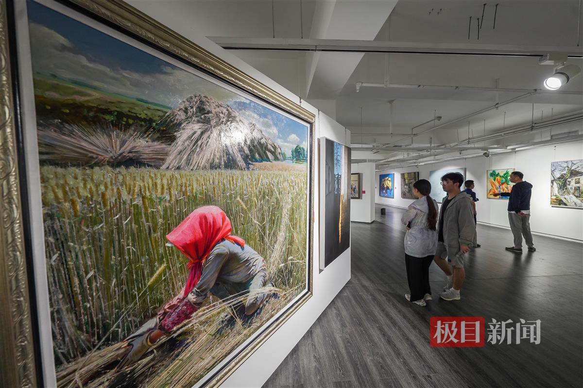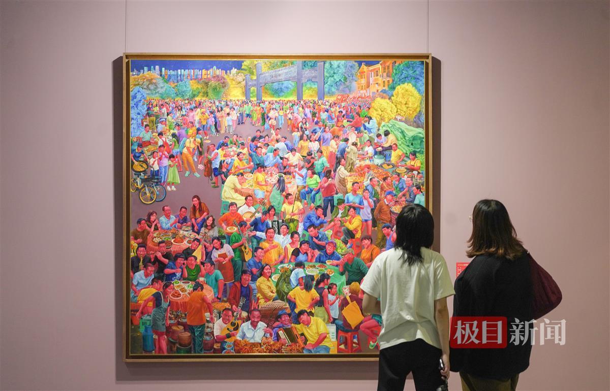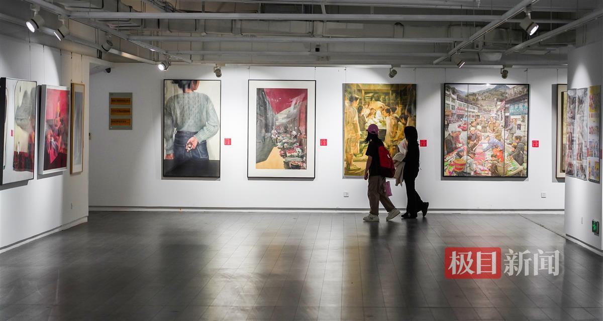极目新闻记者在现场看到,本次参展作品多为大画幅,加上展厅内布局紧凑,信息量相当密集。“一走进来,感觉各种风格的作品扑面而来。”一位观展市民笑称,“一时之间好像两只眼睛不够用。”