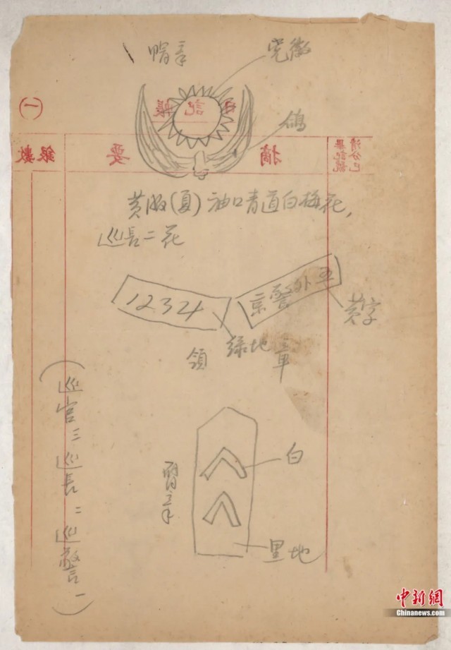 刘琳:北京人艺戏剧博物馆的展品记录着老舍与剧院的诸多合作细节,其中一件展品是老舍的手绘草图。当时老舍正在创作《龙须沟》,与剧组人员谈及剧中刘巡长的制服,老舍为此专门画了一幅各级巡警徽章样式的草图,并请夫人送到剧组。