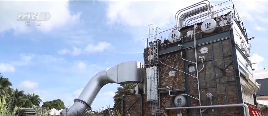 在记者身后展示的就是由前方大型设备挤压后所剩的甘蔗残渣。相对于传统的煤炭发电来讲,可以减少大量的二氧化碳的排放。早在1991年,毛里求斯就开始了甘蔗渣发电系统的发展。现如今,已经满足了毛里求斯约60%的用电的需求。