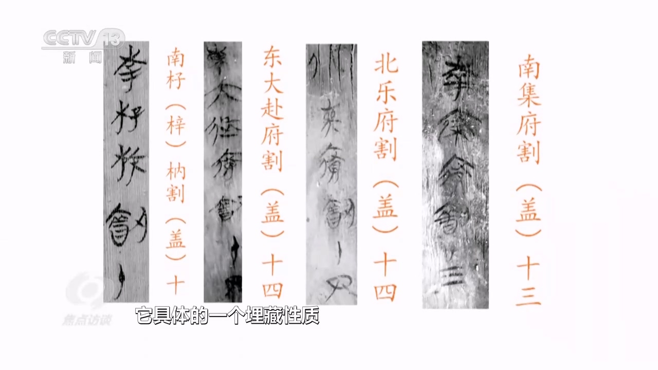 武王墩考古发掘项目考古一组组长张闻捷:“主要记载的是两类信息:第一个是各个分室具体的埋藏性质,比如,北室就写着乐府,北室象征着乐府机构;第二个写盖板的顺序,就是盖一、盖二、盖三、盖四,所以我们就知道是从哪一边开始盖的。”