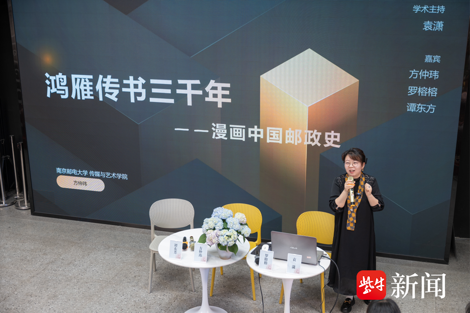 5月19日下午,《鸿雁传书三千年——漫画中国邮政文化史》主题讲座,在可一书店·仙林艺术中心举办。讲座由南京邮电大学传媒与艺术学院动画系系主任方仲玮担任主讲嘉宾,南京邮电大学传媒与艺术学院院长袁潇教授主持。本次讲座围绕新书《漫话中国邮政文化史》,从“漫画”切入,深度解读这本邮政历史类图书的独特价值。