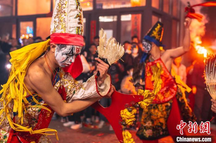 “画过脸谱,扮过家将,惩恶扬善的精神就要记在心中。”历经三小时,完成“开面”的黄杜飞拍了拍手,“兄弟们,出将。”