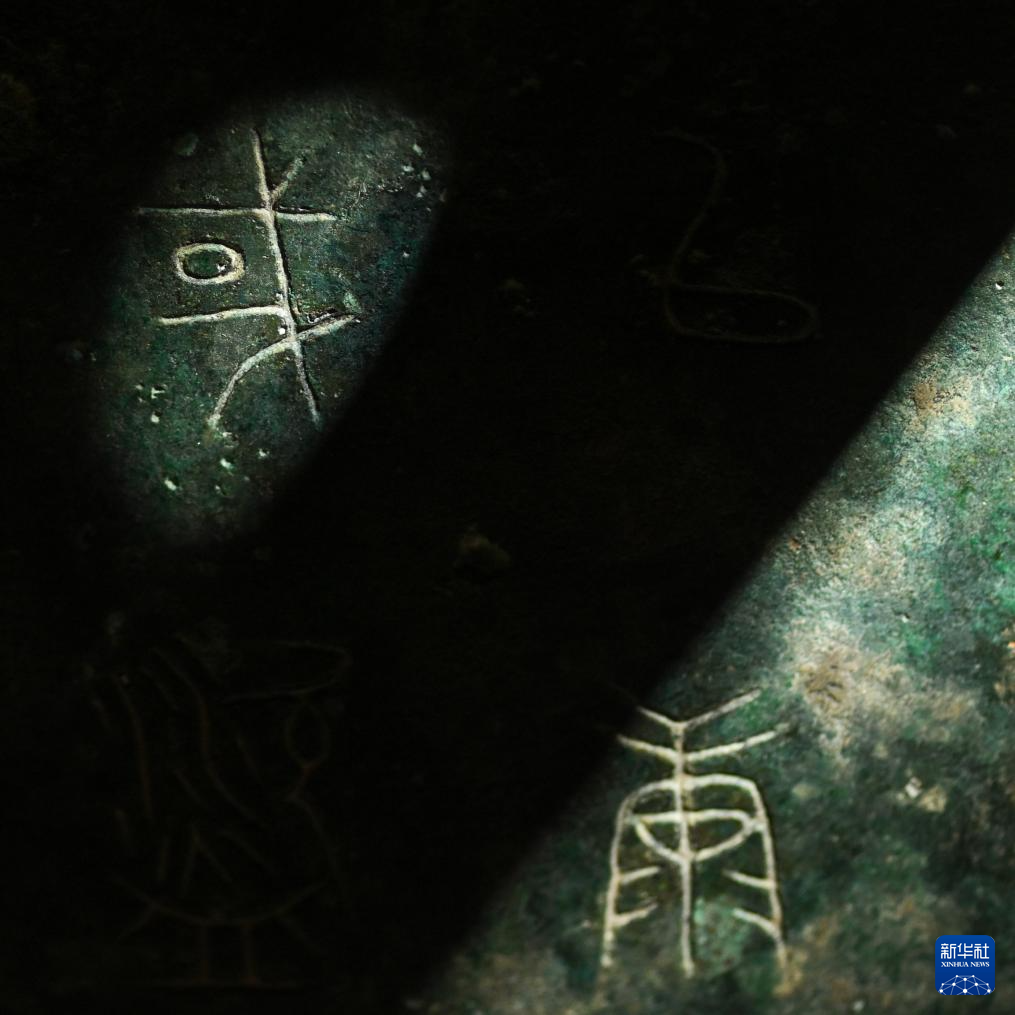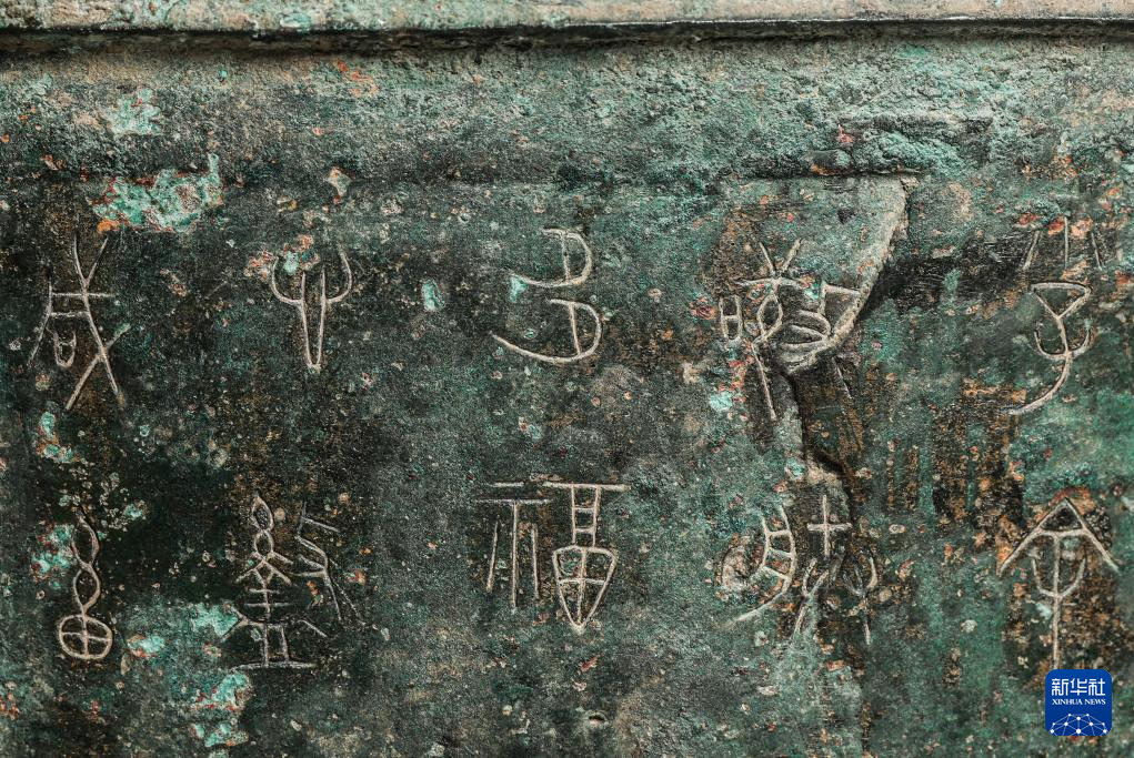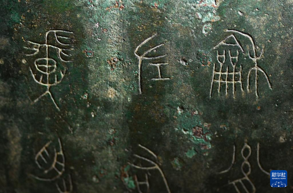 秦公镈(一号镈)铭文“或(国)”字(左上)(2024年1月23日摄)。 新华社记者李贺摄pagebreak
