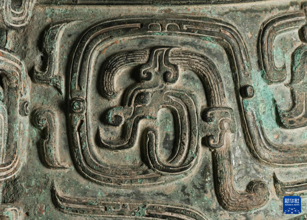 秦公镈(一号镈)“扉棱”上的龙纹特写(2024年1月23日摄)。 新华社记者李贺摄pagebreak