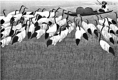 老藤的小说《北地》将东北地区的自然风貌融入文学想象中,建构出一个充满着地方感的东北镜像。图为《北地》插图《乡情》。郝伯义画