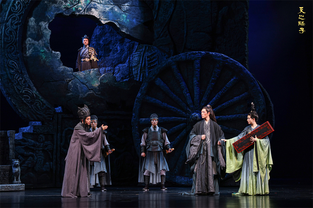 朝天的飞马、矗立的铜镜……曹操与儿子们的历史故事在大气与诗意兼具的舞台上拉开——“桃花红、李花白,谁说花开都一个颜色?”又在一首令人深思的诗句中落幕。5月28日,北京人艺历史大戏《天之骄子》再次登上首都剧场的舞台,带领观众欣赏历史大戏,探讨人生选择。本轮演出将持续至6月6日。