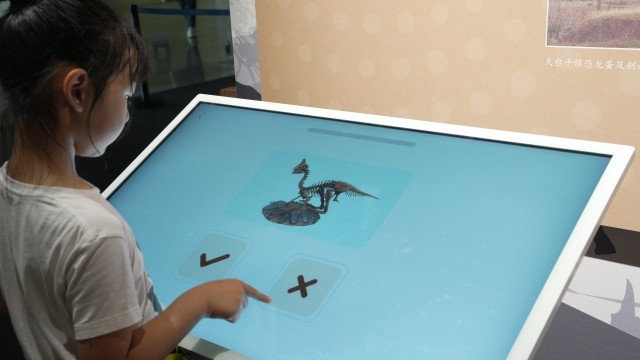 记者注意到,此次展览的许多标本来自河南和内蒙古,这两个省区是出土恐龙和恐龙蛋化石的“大户”。而恐龙的足迹遍布中国天南海北,在展厅的一面墙上,小朋友们可以尝试在磁吸地图上标记恐龙蛋化石出现的位置。