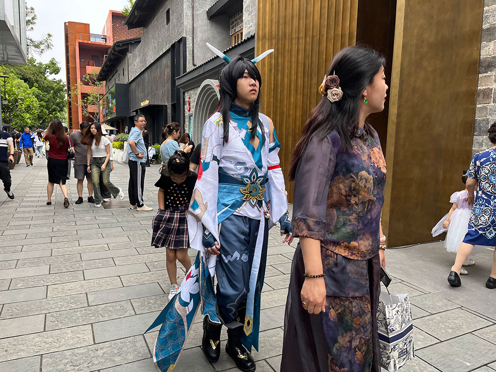 记者6月1日在EKA·天物看到,这里游客络绎不绝,因为是“六一”儿童节,不少戴着红领巾的中、老年游客也结伴来这里拍照打卡。在宠物友好商店门口,商家甚至为宠物们系上了气球。