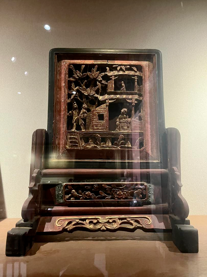 在南京中国科举博物馆内,这些带有美好寓意的文物频频闯入眼帘。该馆正在展出的一方蟾宫折桂砚屏颇为吸睛。据馆方介绍,砚屏是古人用作陈列、摆设的观赏性小型屏风,起初置于砚端,用来遮挡风尘,后来装饰增多变为观赏物。这件砚屏正面以深浅浮雕的技法雕刻而成,并涂抹上金粉,描绘了一幅蟾宫折桂图,且底部雕有盛开的桂花。