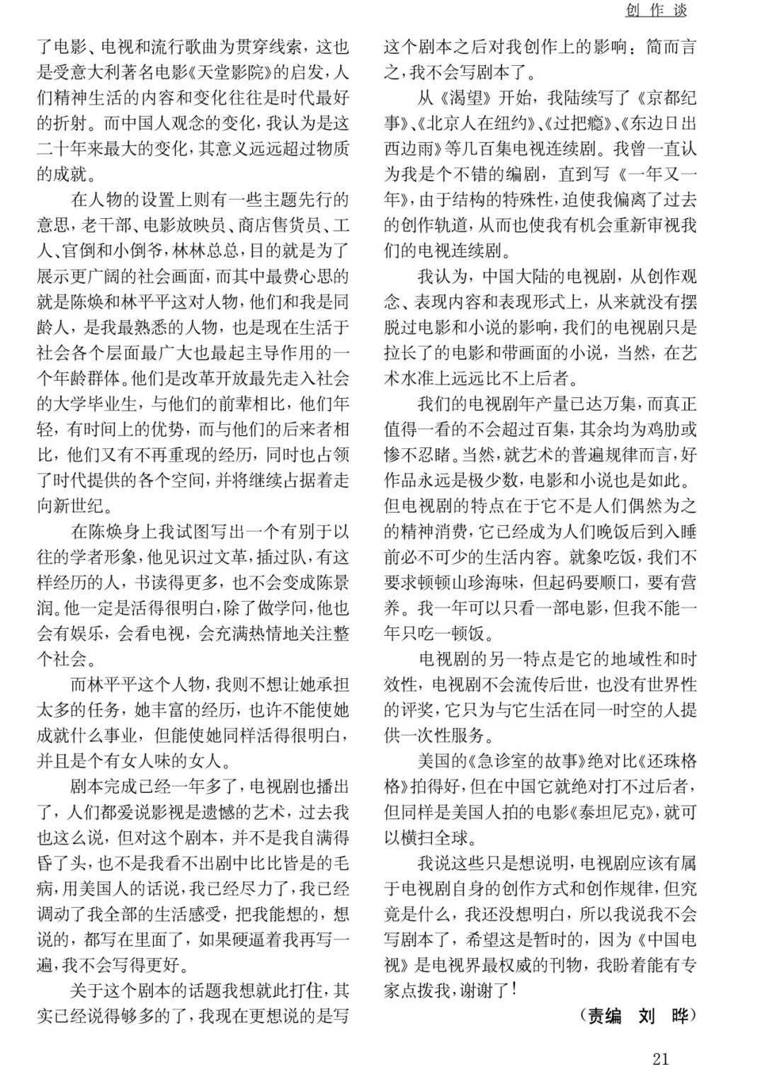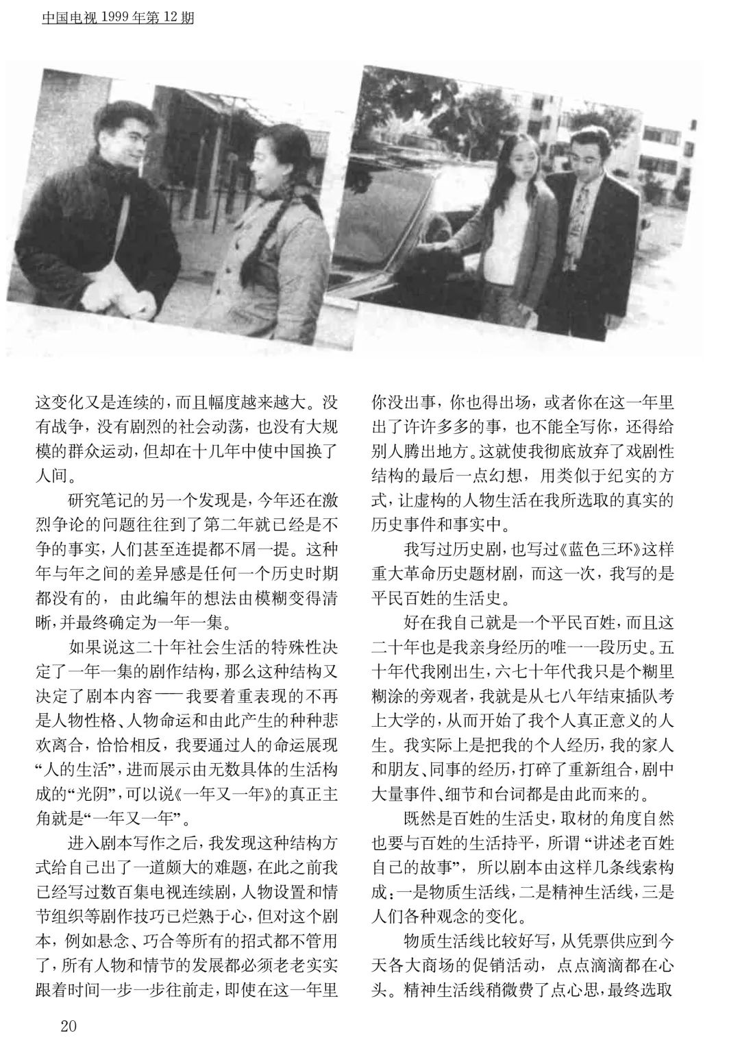 附:《中国电视》杂志1999年第12期《“昨天与隔世”——创作随想》原文