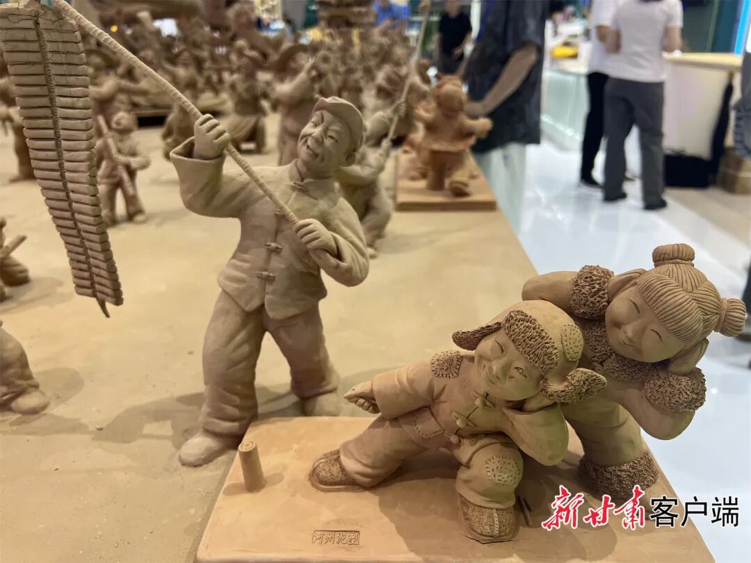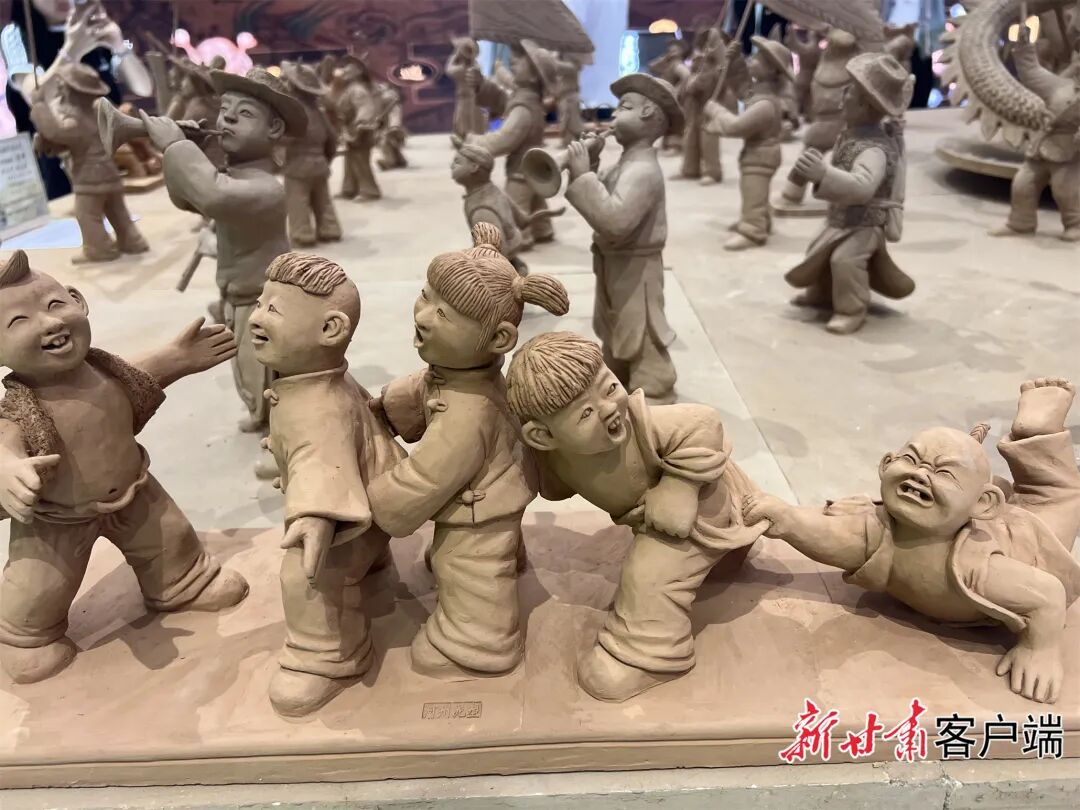 “泥瓷不像泥塑易碎,不怕水浸雨淋,也比泥塑素胎多彩。”常天平告诉记者,2021年,他受邀参加了一个全国性提升培训班,发现比起自己玩泥巴,景德镇才是真正的高手,“都把泥巴玩成黄金了,是真正的‘点土成金’啊。”此后,常天平在陇原大地上,四处寻找适合烧制的泥土,在N次尝试后,终于找到一种泥土,经1111℃烧制,用自己创造的釉水,“为泥塑上釉,变成真正的泥瓷艺术作品。”这一尝试,几乎是革命性的,也为泥塑市场打开了通向广阔世界的一扇门。今年3月,常天平为临夏世界地质公园量身打造了以永靖恐龙为原型的“龙龙”和以和政羊为原型的羊羊作品。“每次都收获满满。”无论参加深圳文博会、敦煌文博会,还是参加各类培训,用心的常天平总是有不同收获,有一点在他心里渐渐成为“执念”——将全国优秀技艺“嫁接”到河州泥塑,以黄土高原泥土创作的泥塑作品、烧制的泥瓷作品,带着西北独有的历史底蕴和文化味道,走得更远,飞得更高,再形成产业,走向广阔世界。原始、自然、憨厚、淳朴……第二十届深圳文博会上,甘肃工艺美术大师岳云生带来的《兰州泥塑》作品也深受观众喜爱。
