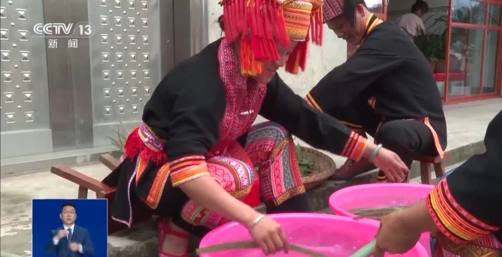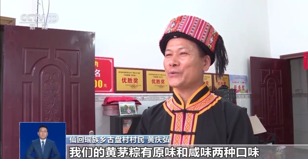 仙回瑶族乡古盘村村民黄庆弘:我们的黄茅粽有原味和咸味两种口味,用黄茅叶包裹的粽子不仅香气扑鼻,而且能够保持粽子的原汁原味,让它的口感更加醇厚。