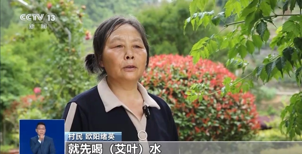 村民欧阳绪英:艾叶鸡蛋煮好后,就先喝艾叶水,再就滚艾叶蛋,就是滚额头、手心、脚心、肚脐,身上滚一滚,就身体健康嘛。