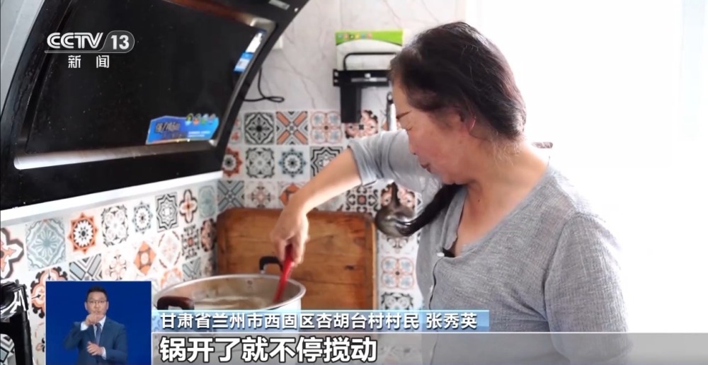 甘肃省兰州市西固区杏胡台村村民张秀英:锅开了就不停地搅动,防止粘在锅底上。煮成皮和面芯都开就行了。