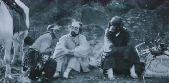 我们还能看到,《盘丝洞》有不少场景是跳脱了《西游记》的原有设定。比如猪八戒好不容易找回了被砍掉的猪头却又装反了朝向,还有个妖怪现形后竟然变成了一把硕大的夜壶?!这些都不是原著中的描写,而是编导为了影片的视觉效果,以及影片的娱乐性、趣味性而夹带的“私货”。这让影片的视觉呈现看上去有些杂乱,甚至荒腔走板,却恰恰体现了20年代中西古今彼此交融混杂的文化景观,充满了那个时代的文化魅力。