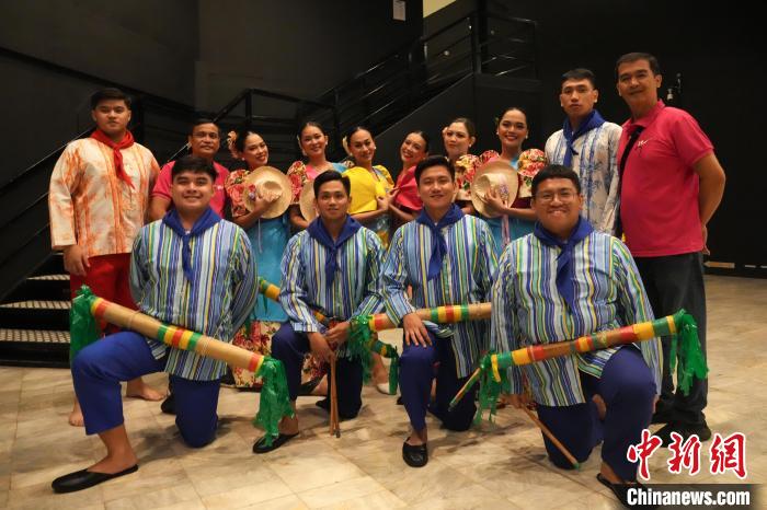 当地时间6月9日晚,菲律宾民族舞蹈团的青年演员们在演出前合影。 中新社 记者 张兴龙 摄