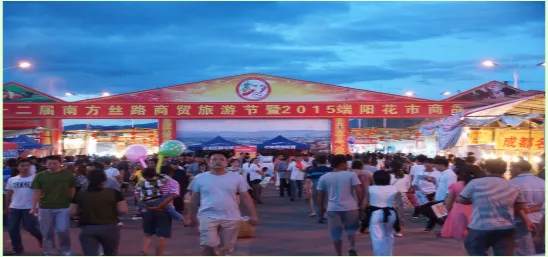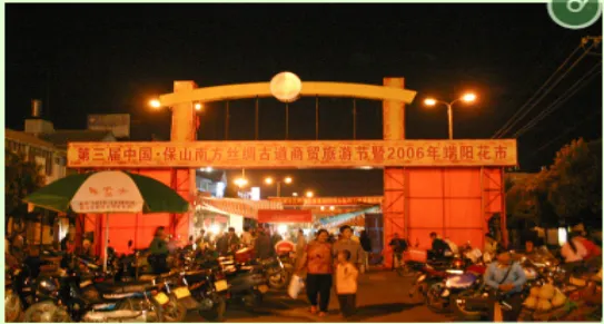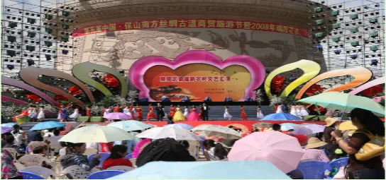 于是花街的影响、规模不断扩大,到20世纪90年代初期,保山传统花街已发展成集花卉展销,物资交流,经贸洽谈,观光旅游为一体的大型商贸盛会,届时四方宾客云集保山。人们在鲜花丛中倘徉,以至通宵达旦。2001年,花街又移到位于保山市区东南边的哀牢文化园区,哀牢文化园区是政府为弘扬保山优秀传统文化而开辟的新型文化园区,这里视野开阔,布局规整,为传统端阳花街的发展提供了广阔的空间。然而,青石板、卵石、流水、青瓦木板壁民居、花木所构成的最富人性化的场景,在家门口悬挂艾草、菖蒲叶,以艾蒿熏室,新松毛铺地,女子以“香汤“浴身等等这些花街最富神韵的内容却永远地消失了,不免叫人怀想。