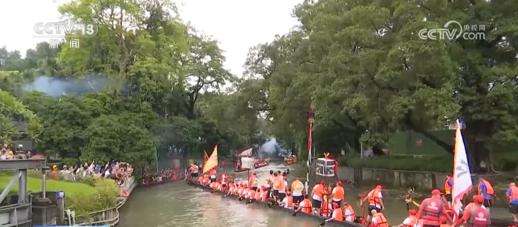 央视网消息:说起端午节,很多人首先想到的就是去看龙舟赛。今年这个端午假期,国内很多游客都选择了去广东观光。说起选择广东的原因,很多游客表示,因为那里的传统文化传承得好,尤其像赛龙舟这样的活动,红红火火,仪式感爆棚,氛围感拉满。接下来的时间我们就来关注:游客爆满、活动丰富,广东是如何做好传统文化的传承与焕新?在广州、佛山两地,每年端午节都有“龙船探亲”的传统习俗。在五月初五、初六这两天,广州泮塘和佛山盐步两地的老龙舟都要“探亲互访”,广州泮塘400多岁龙船和佛山盐步500多岁龙船“结契”故事被广泛流传成为佳话。这段以龙舟为纽带建立起来的深厚情谊已延续了400多年。先到广州荔湾去看一看。
