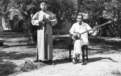 20世纪50年代初,张剑平唱单弦牌子曲,中国艺术研究院音乐研究所杨荫浏(右)三弦伴奏。图片由作者提供